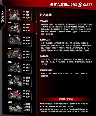※リアボックス等装着車はワンサイズアップ