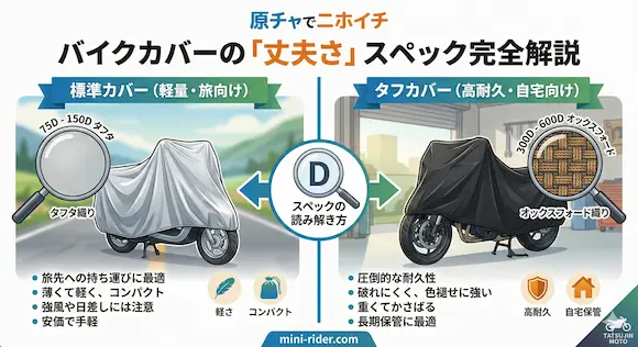 だからこそ、バイクカバーの生地はしっかりチェックしておきたいポイントです。