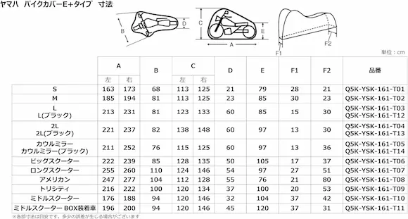 サイズ表でしっかり確認し、あなたのバイクサイズにぴったり合ったカバーを手に入れましょう!